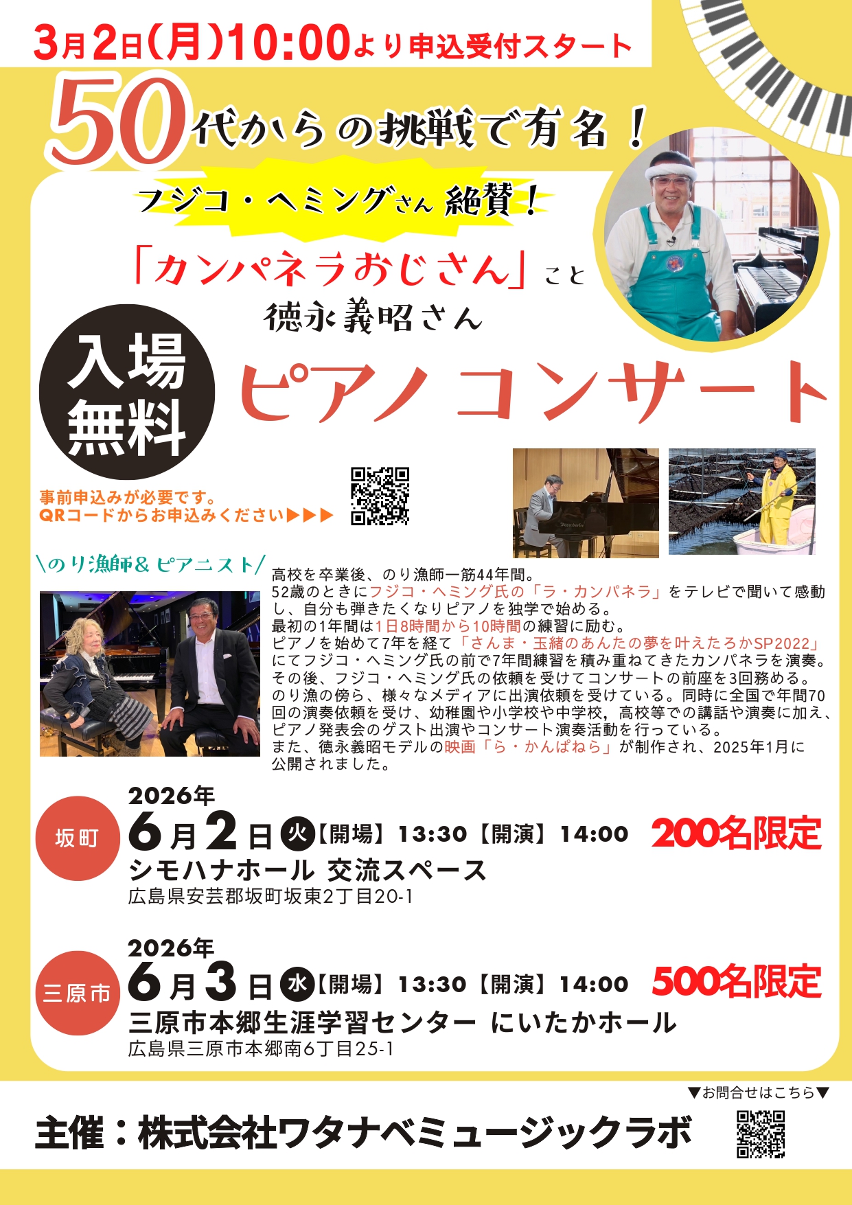 「カンパネラおじさん」こと徳永義昭さんピアノコンサート 開催♪